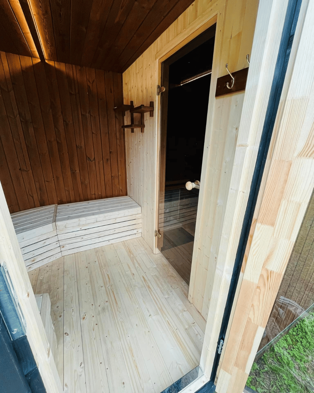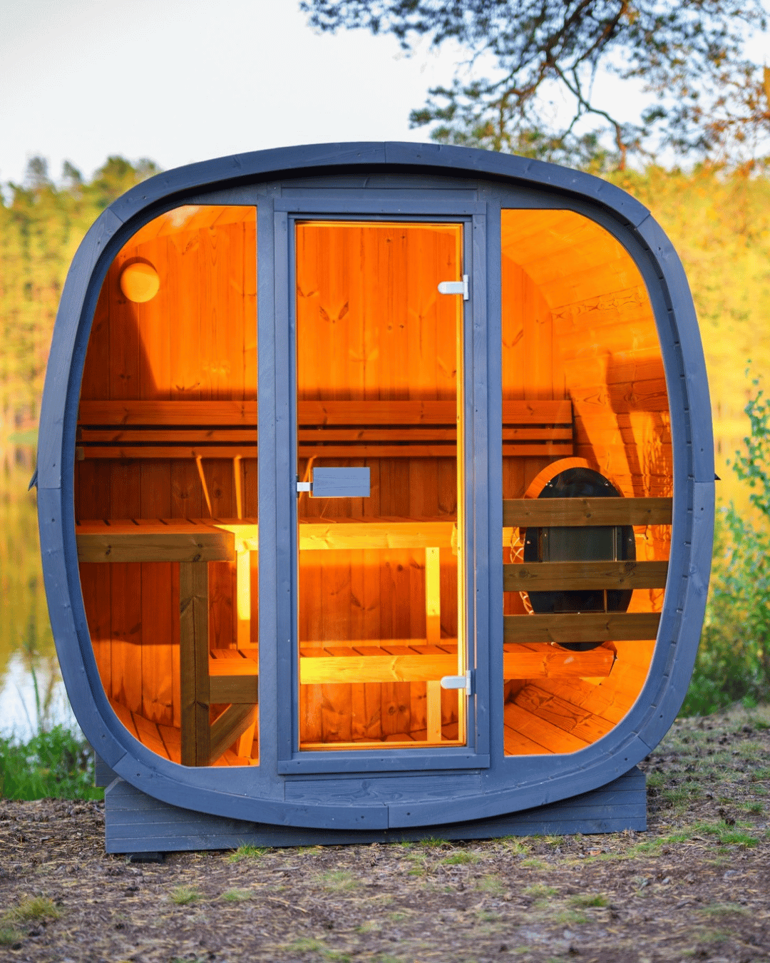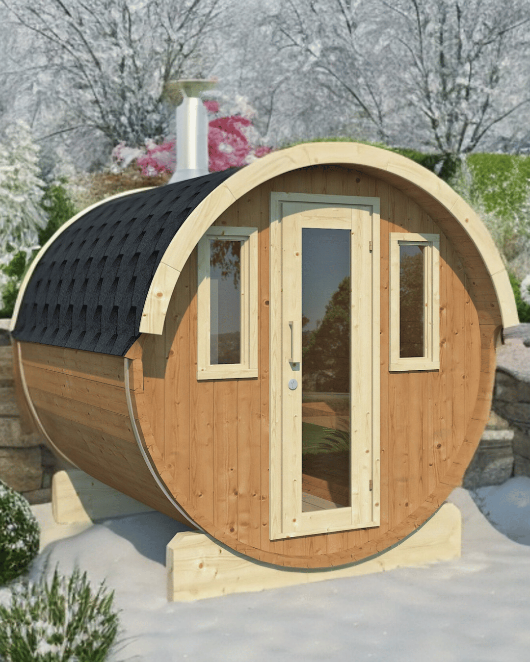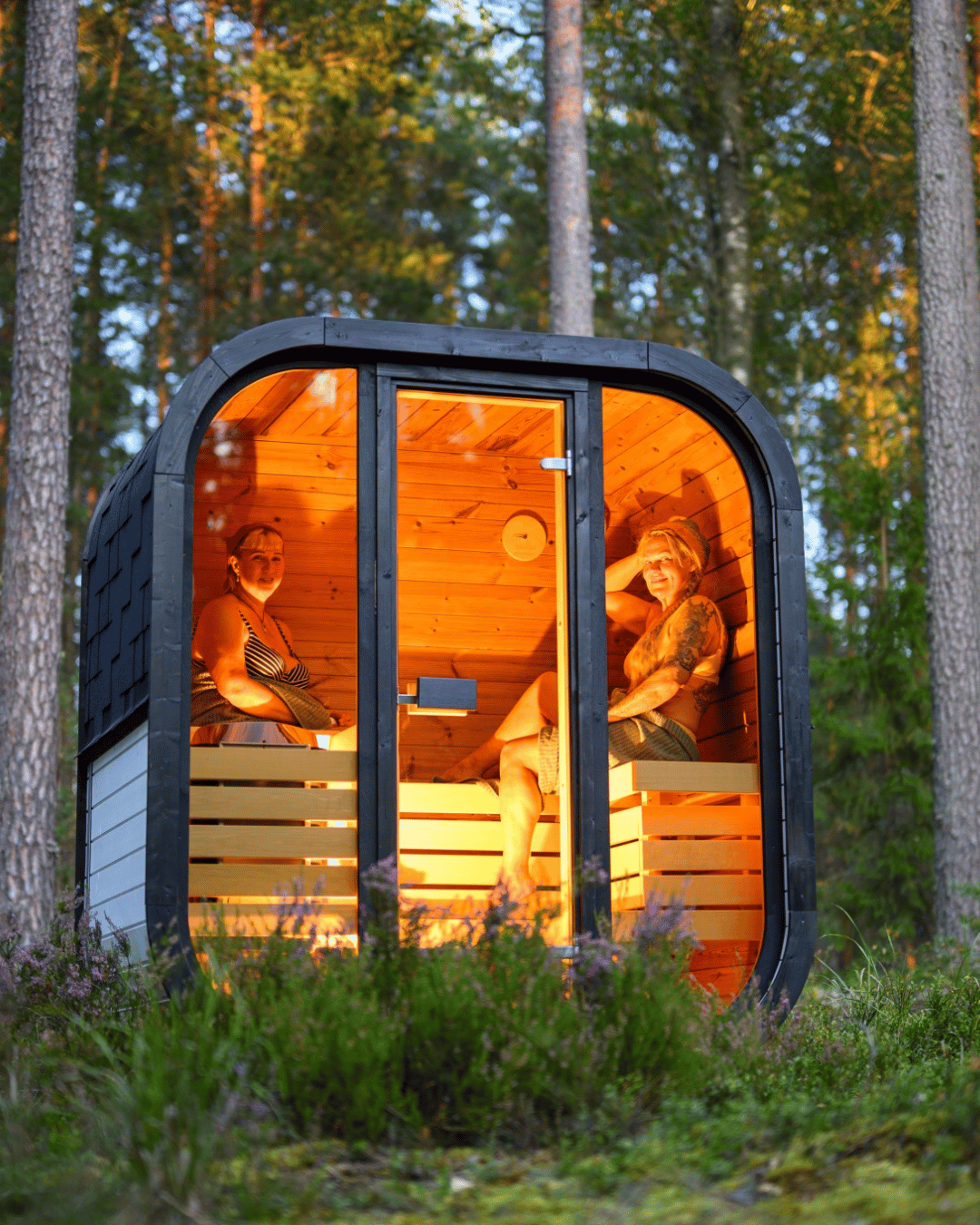 SaunaSupply UKU160 Cube Nordic Spruce / Thermowood 4 Person Outdoor Sauna - Includes Bucket, Ladle, Thermometor, SupiOil