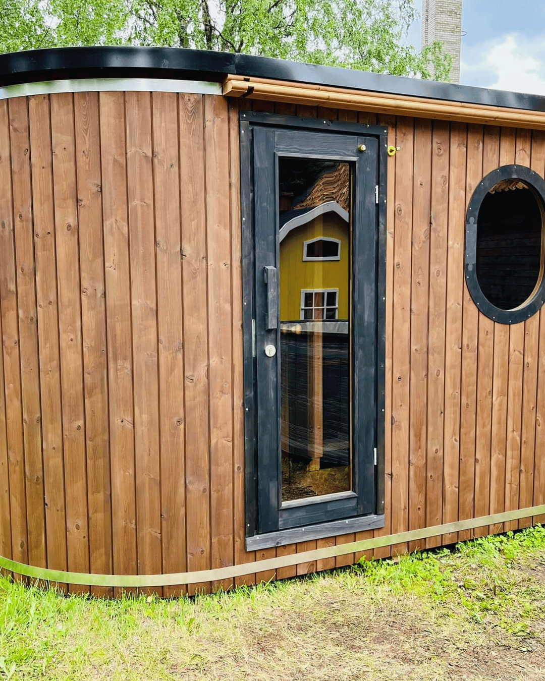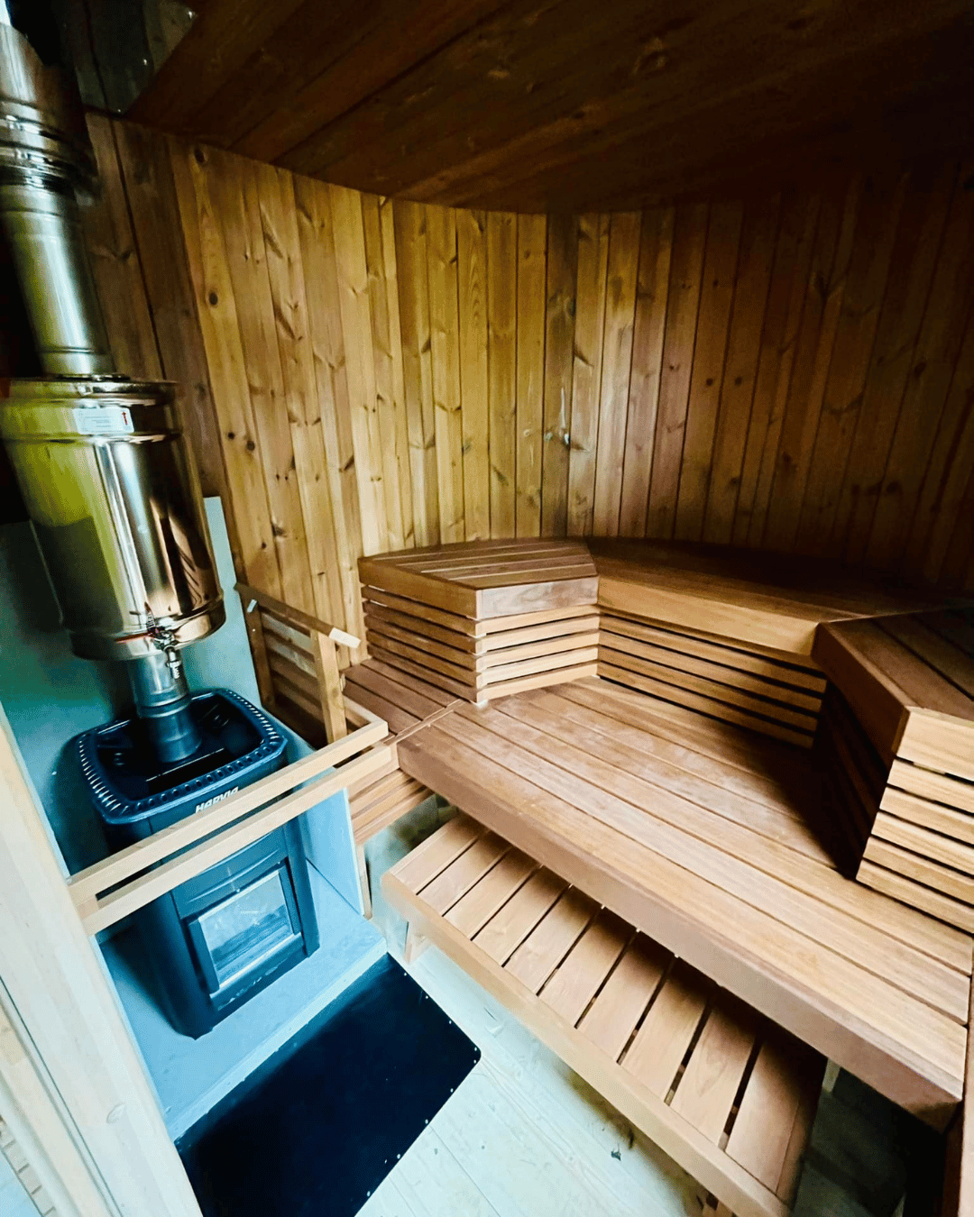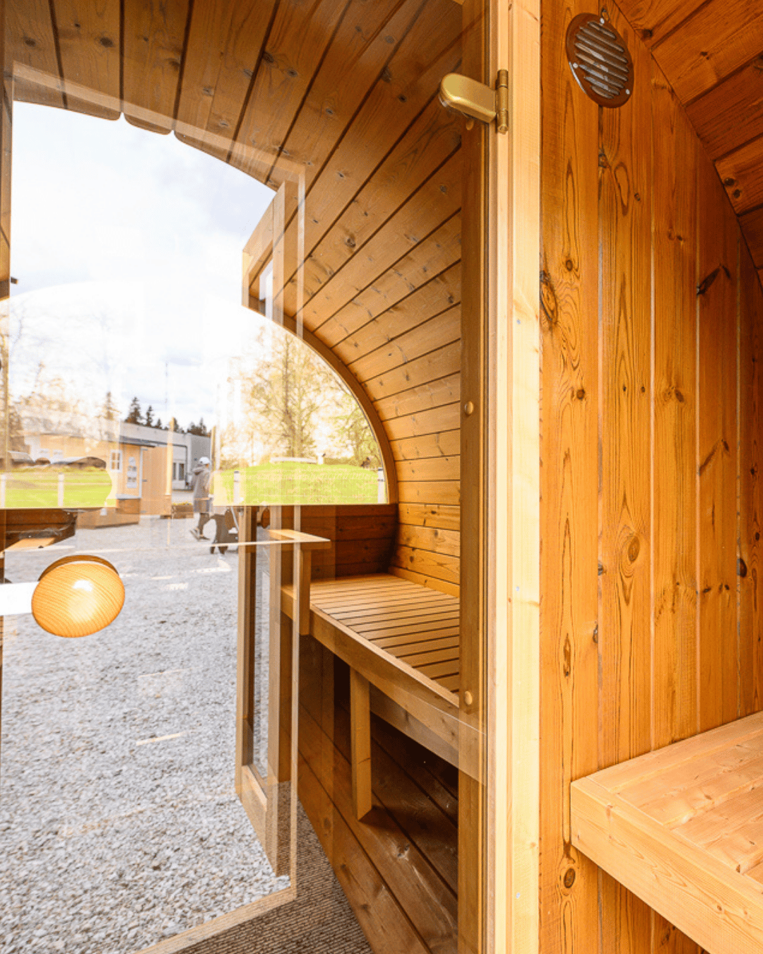 SaunaSupply UKU160 Cube Nordic Spruce / Thermowood 4 Person Outdoor Sauna - Includes Bucket, Ladle, Thermometor, SupiOil