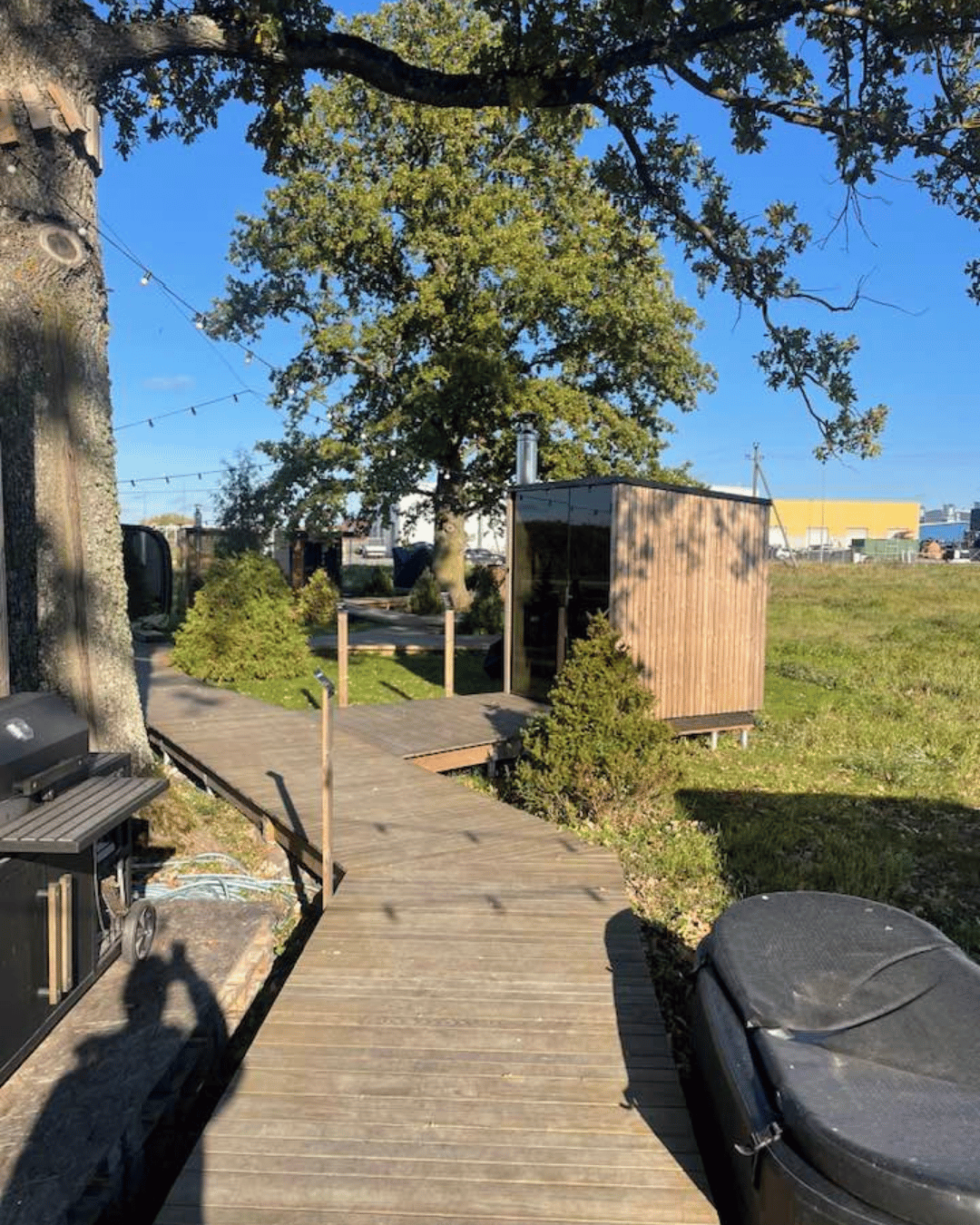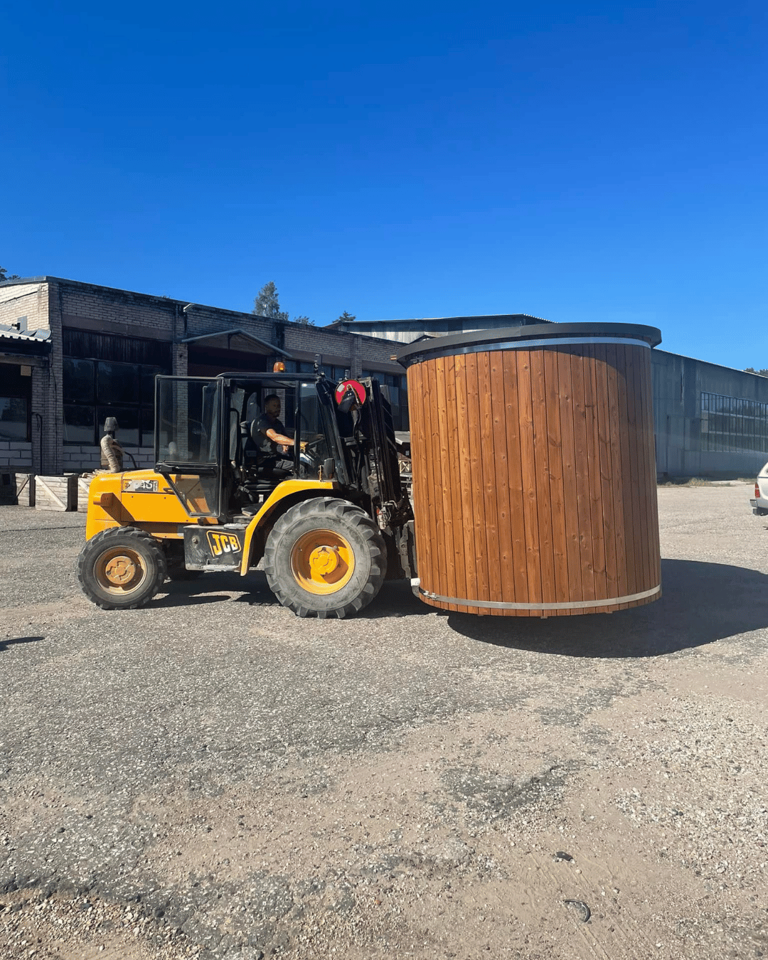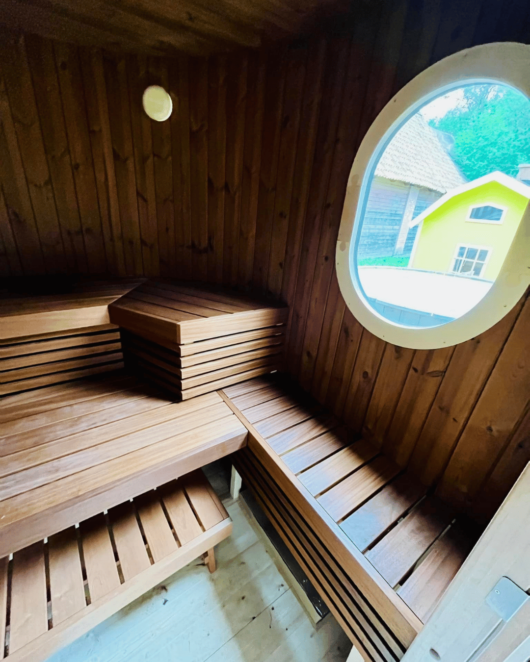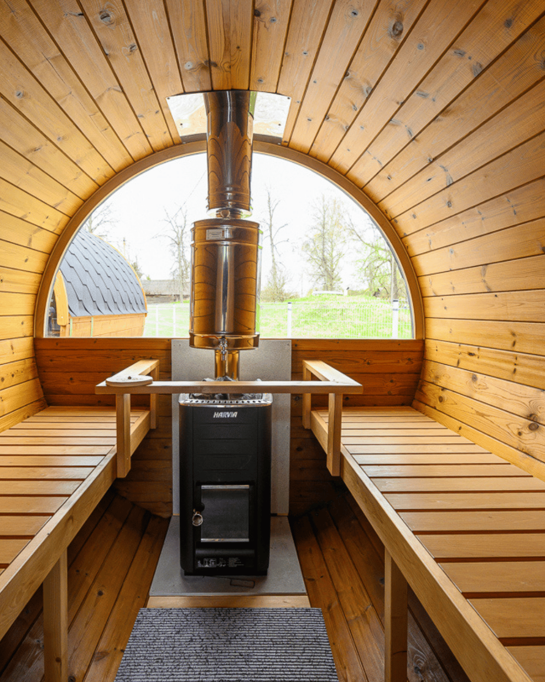 SaunaSupply UKU160 Cube Nordic Spruce / Thermowood 4 Person Outdoor Sauna - Includes Bucket, Ladle, Thermometor, SupiOil