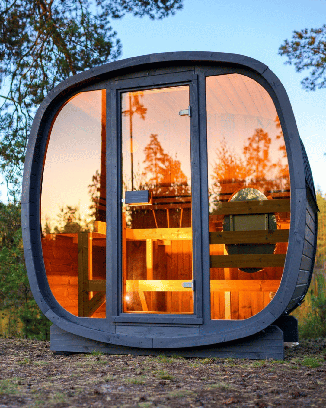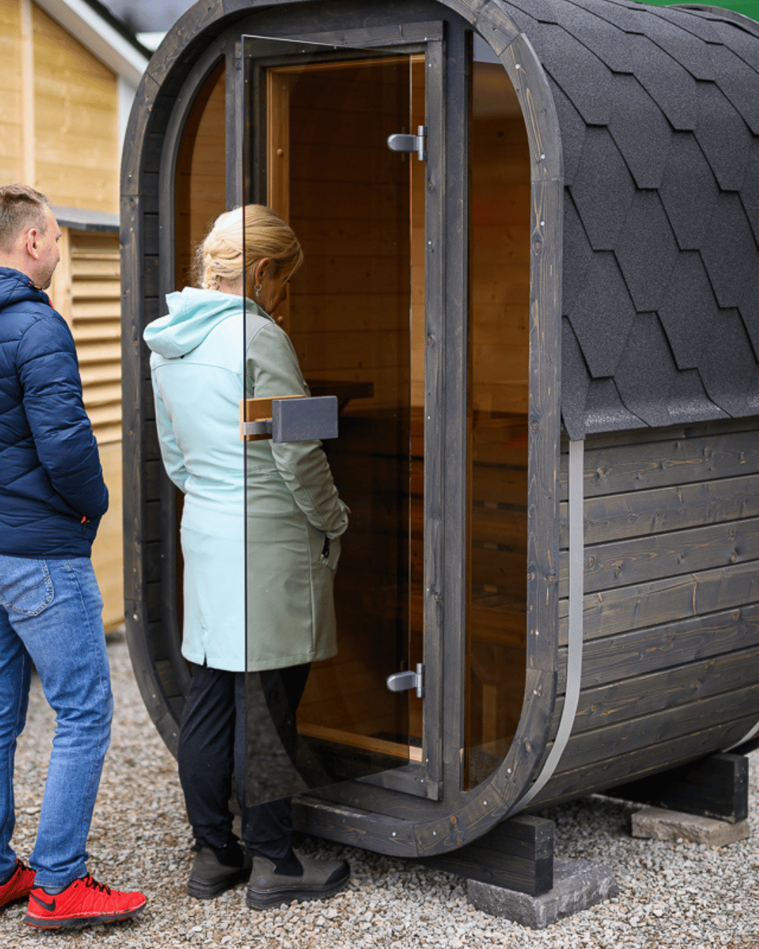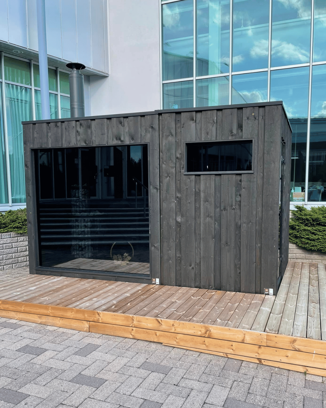 SaunaSupply UKU130 Cube Thermowood 4 Person Outdoor Sauna - Includes Bucket, Ladle, Thermometor, SupiOil