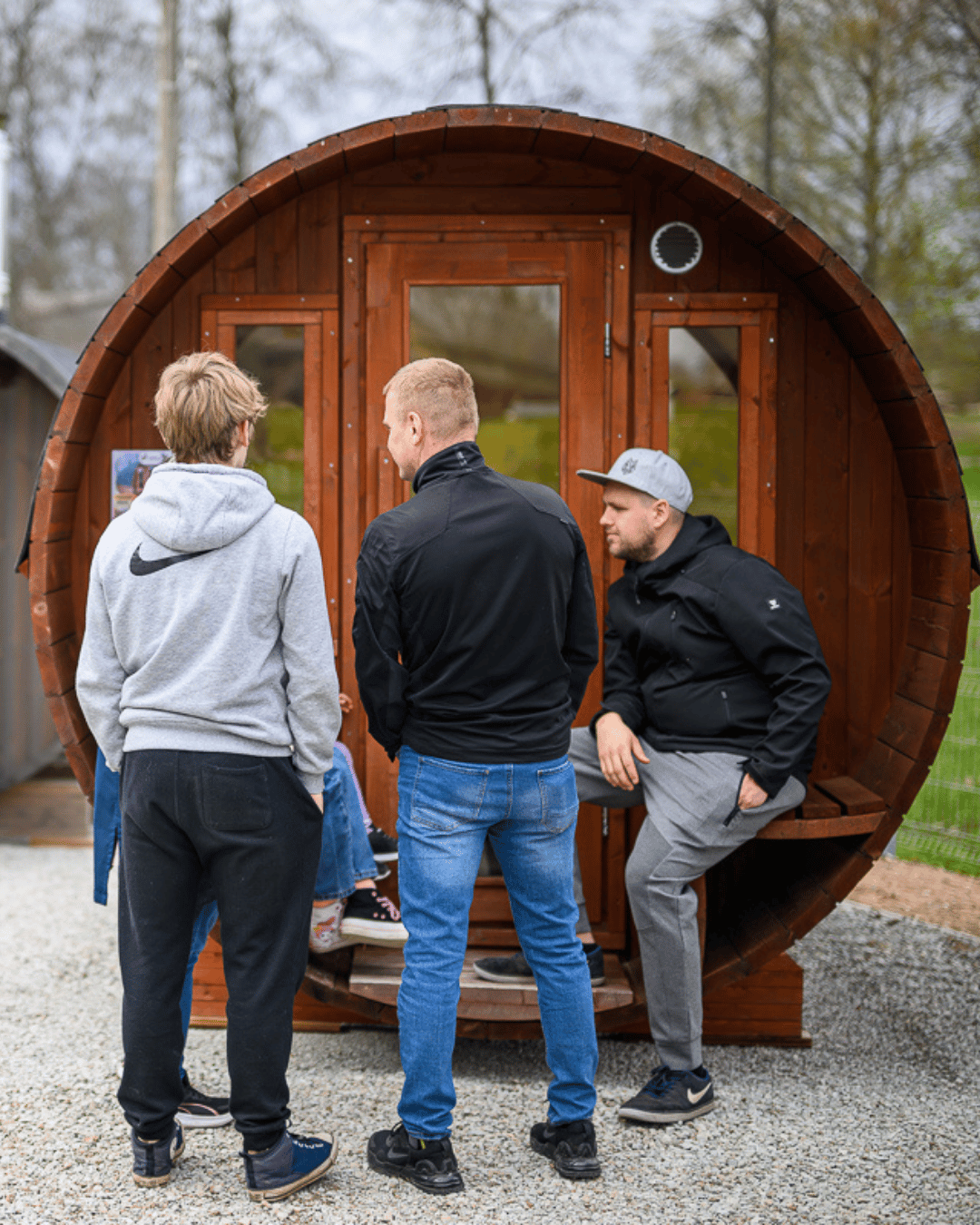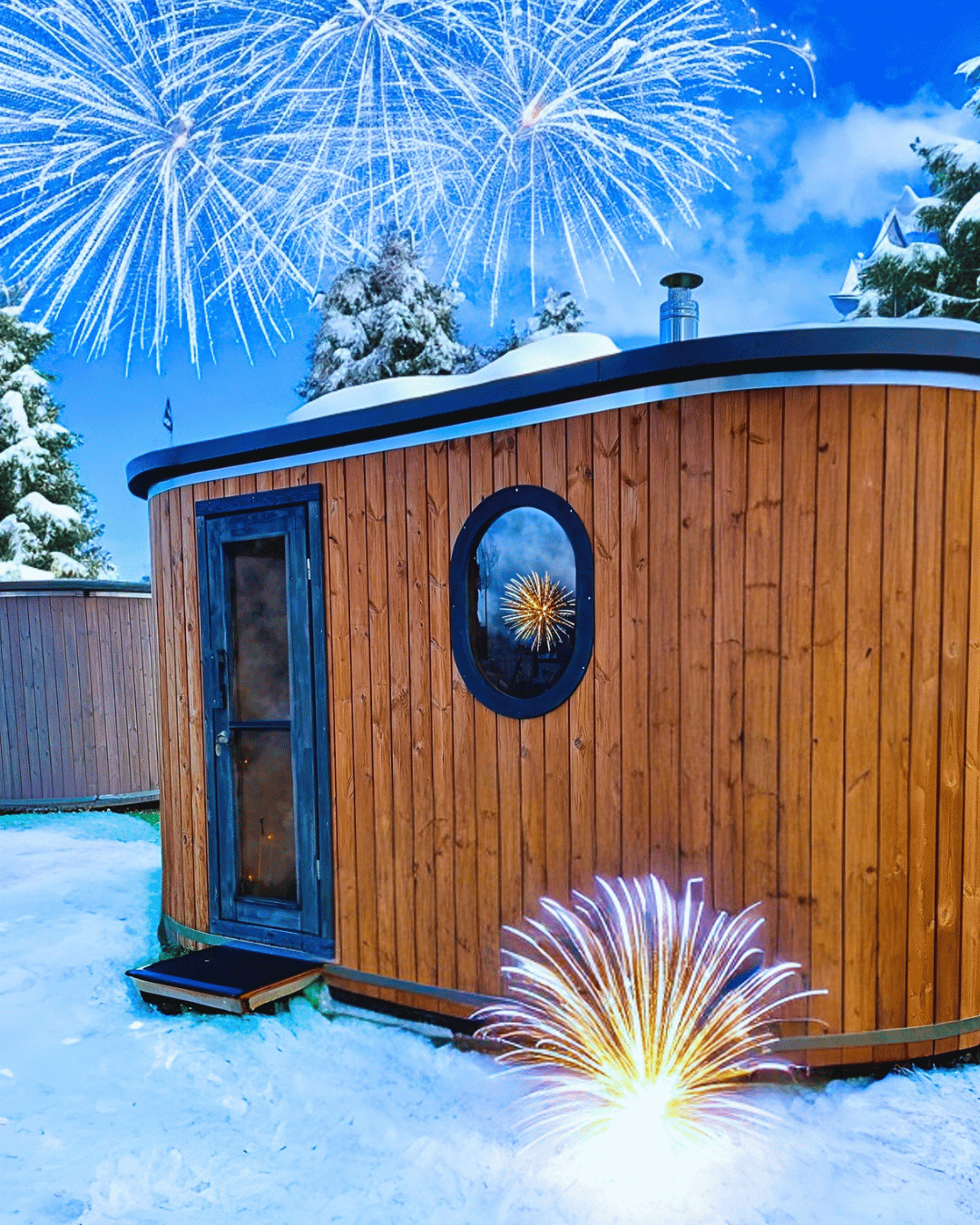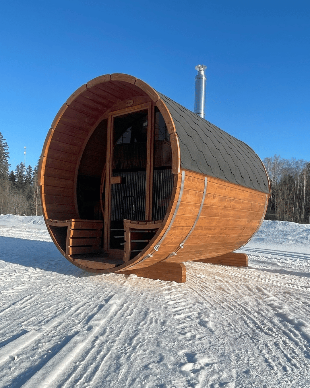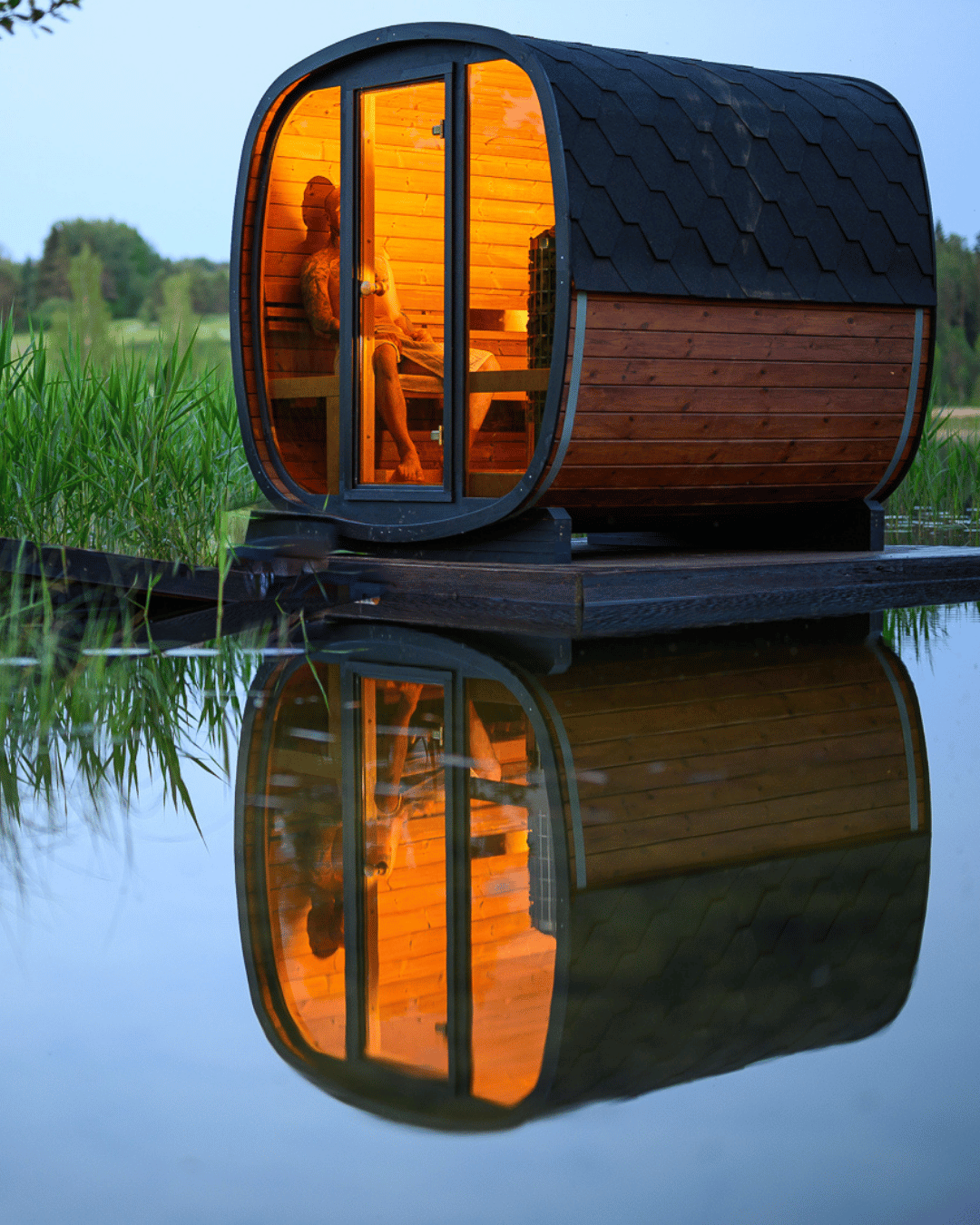 SaunaSupply UKU130 Cube Thermowood 4 Person Outdoor Sauna - Includes Bucket, Ladle, Thermometor, SupiOil