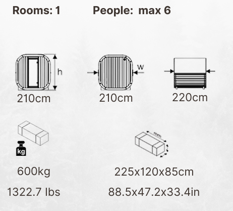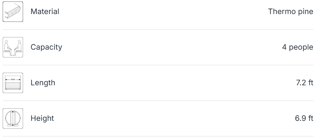 | Bench Material | Thermo alder Thermo aspen Thermo pine |