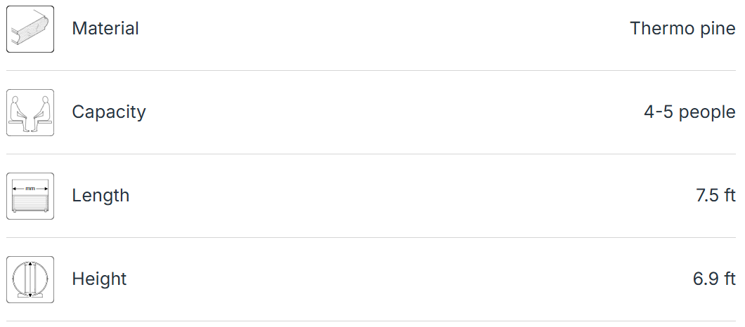 Sauna Specifications