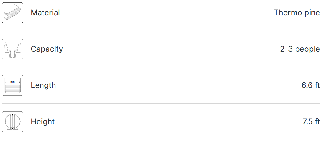 | Bench Material | Nordic spruce Thermo aspen Thermo pine |