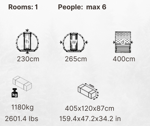 The Susi 280 is a stylish and functional garden sauna designed for those who value modern design and everyday comfort. Its smart layout provides a relaxing and spacious environment for up to 6 people.